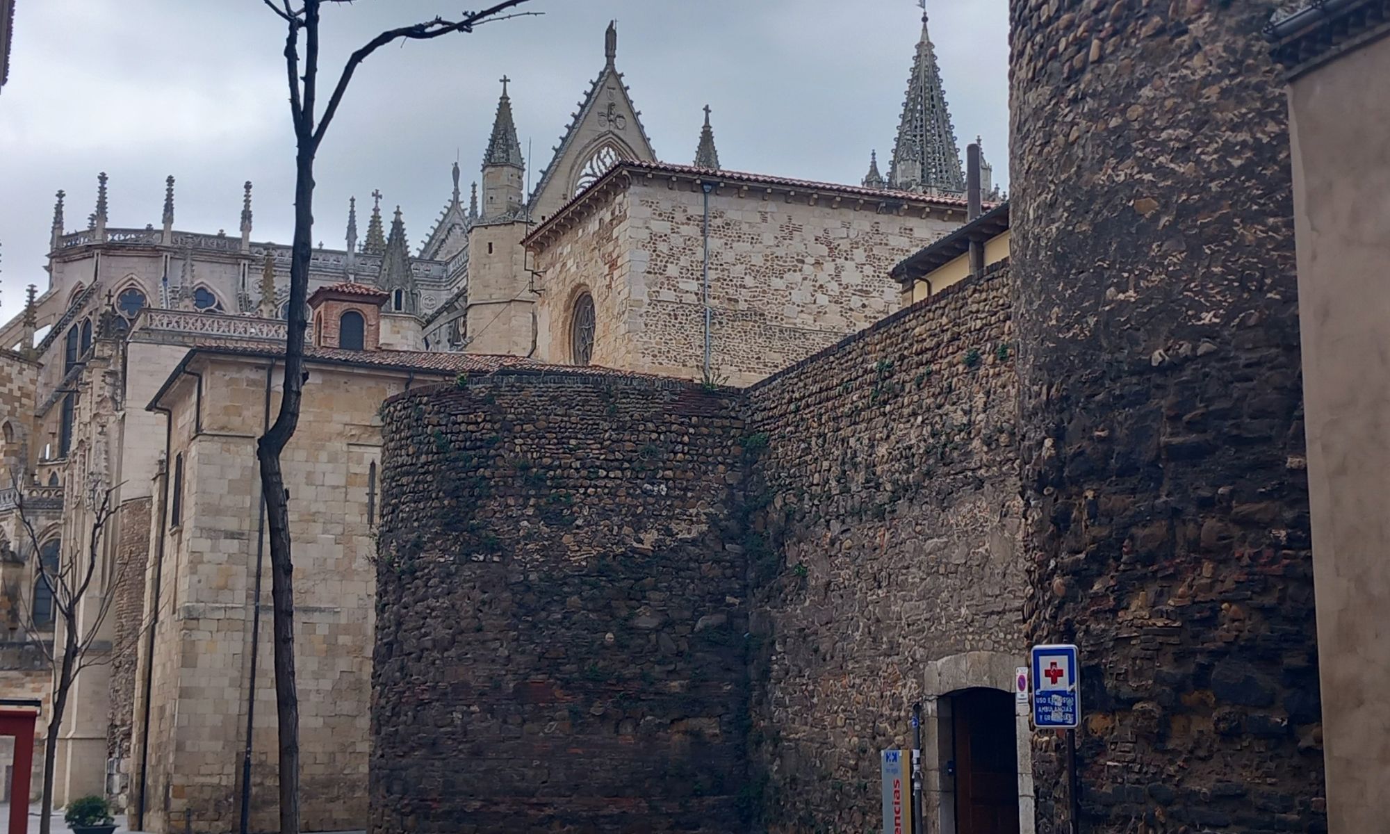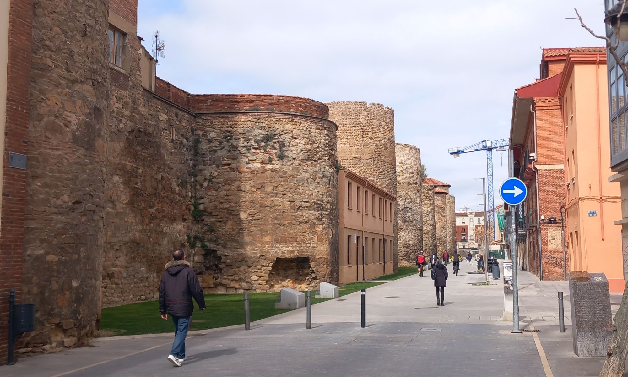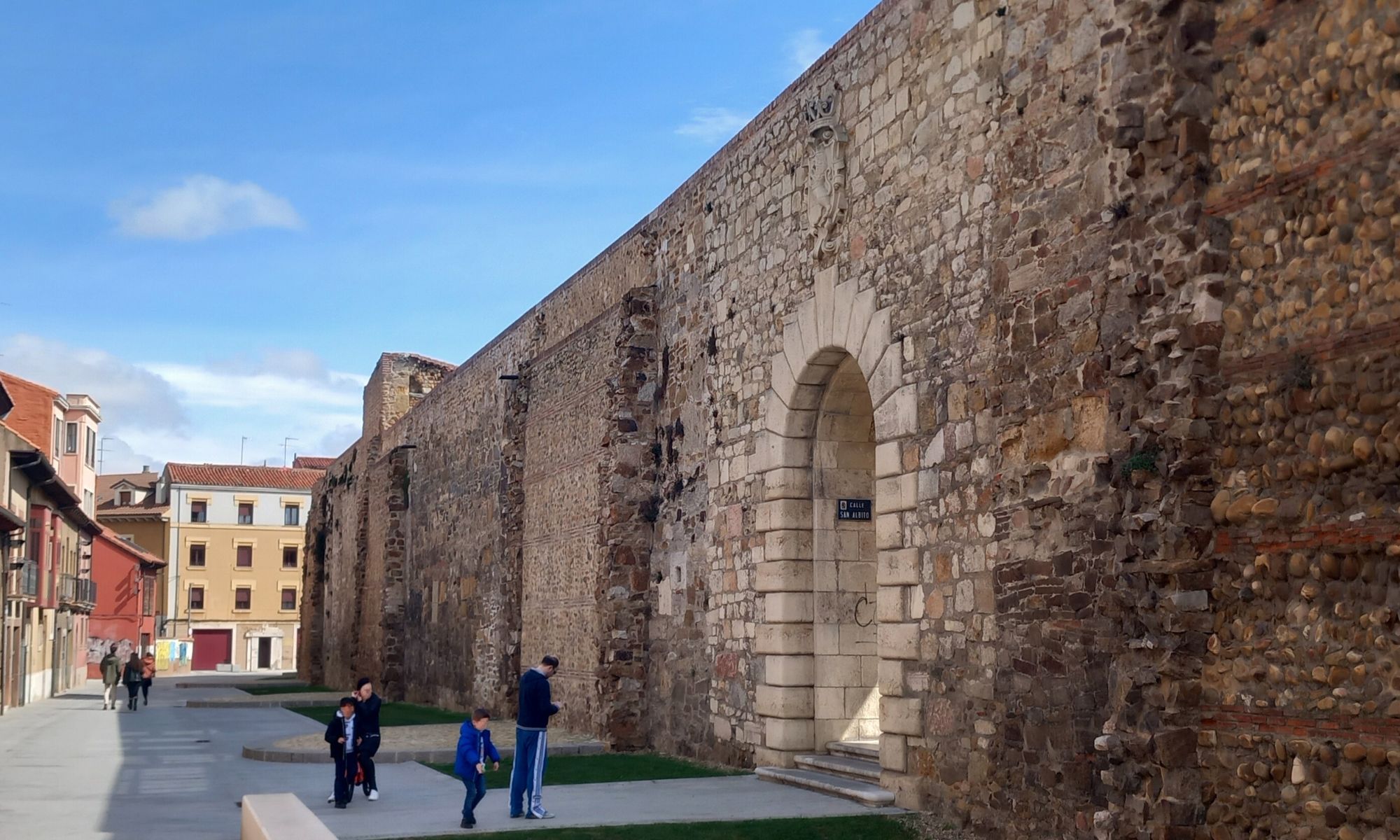 La muralla romana se extiende, en forma de rectángulo casi seiscientos metros en su lado más largo y trescientos cincuenta en el corto. Su construcción, como habrán imaginado, parte de la necesidad de protección del nuevo asentamiento romano, que data del año 75 después de Cristo, por la celebérrima Legio VII Gémina.