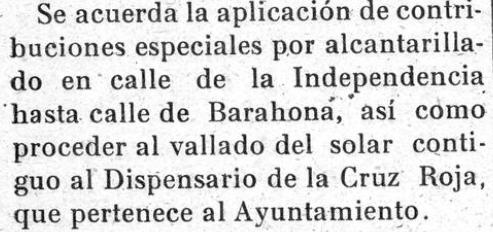 Para complementar estas construcciones, apenas nueve años después, se procedía a modernizar este barrio judío a través del siguiente texto encontrado en el BOPL de 1944: “Se acuerda la aplicación de contribuciones especiales por alcantarillado en la calle de la Independencia hasta calle de Barahona, así como proceder al vallado del solar contiguo al Dispensario de la Cruz Roja, que pertenece al Ayuntamiento.”