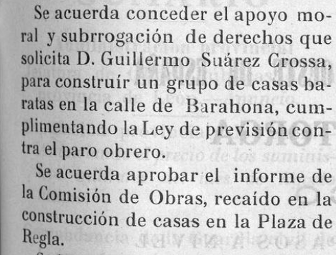 Estas casas tan peculiares y características de Barahona fueron también añadidas posteriormente, cuando en el Boletín Oficial de la Provincia de León se reconociese, en su versión de 1935, que “se acuerda conceder el apoyo moral y subrogación de derechos que solicita D. Guillermo Suárez Crossa, para construir un grupo de casas baratas en la Calle de Barahona, cumplimentando la Ley de Previsiones contra el paro obrero. Se acuerda aprobar el informe de Comisión de obras, recaído en la construcción de casas en la Plaza de Regla”.