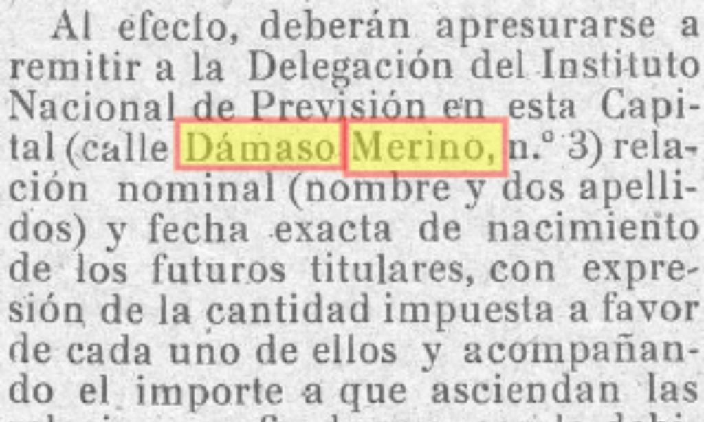 Según la crónica, la calle Dámaso Merino fue pavimentada oficialmente en el año 1932, incluida en un proyecto de mejoras del suelo urbano entre las que se observaban calles famosas como Legión V, Cervantes o la del Conde Luna.