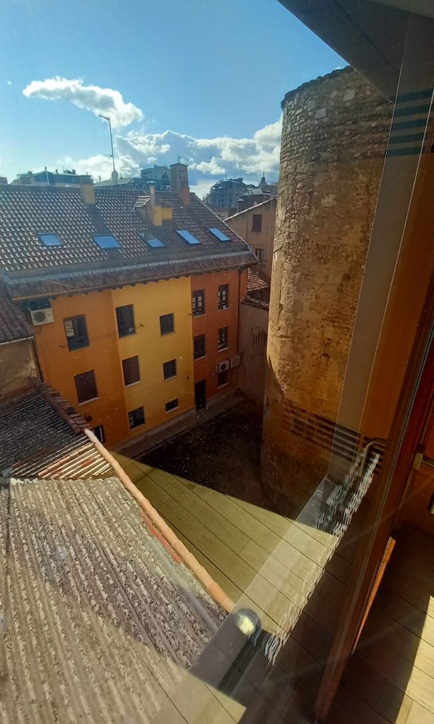 Por no hablar del ya famoso cubo de la muralla, en el que puedes comer, pues ha sido restaurado por los amables y emocionados dueños de la Bodega Regia, Esta muralla llega hasta la intersección entre Conde Rebolledo y Cascalerías, girando hacia la plaza del Mercado o Conde Luna.