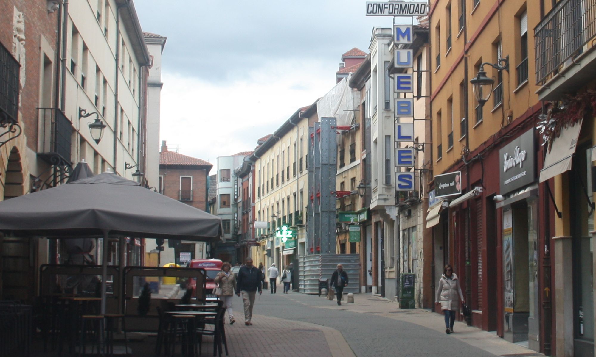 Observen cómo el entramado de la calle va cambiando a medida que pasa el tiempo y cómo, conforme la necesidad de desarrollo aparece en el horizonte leonés, la Rúa va perdiendo paulatinamente su brillo. Hoy en día, una docena de comercios sobreviven al paso del tiempo, y van apareciendo y desapareciendo conforme lo hacen las estaciones. Algunos se mantienen, después de varios años, o décadas, alimentando la valía de esta calle, que, con grandes edificios, casi rascacielos para ese León romano, van oscureciendo una laberíntica calle que nos conduce hasta la calle Ancha, pasando por diferentes brazos que la comunican con otras tantas, como General LaFuente o Calle Teatro, de la que ya hemos hablado en varias ocasiones, conociendo la historia de La Dolorosa y del curioso enigma del cartel que da nombre a la calle.
