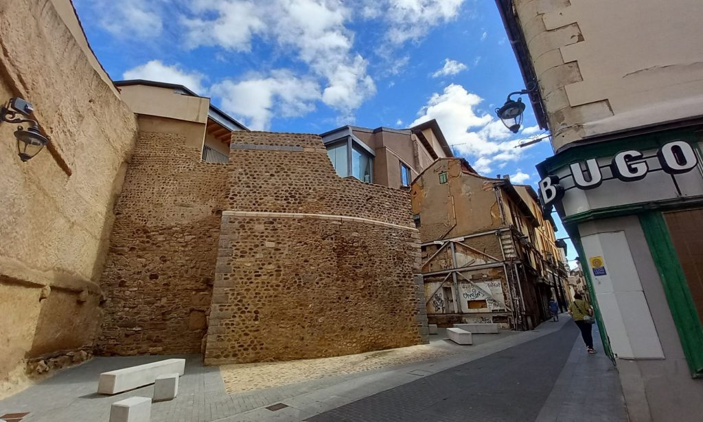 Pero hay, por encima del resto, un elemento que destaca y que, a su vez, permanece ignoto, debido a que está oculto por los edificios adyacentes. Es la muralla romana. Conde Rebolledo es la calle paralela a la construcción de la muralla, así como también lo fue la Rúa. La muralla se extiende hasta Puerta Obispo, donde gira para continuar por la carretera de los cubos. Su recorrido es maravilloso y nos enseña la importancia de la muralla en época romana y medieval.