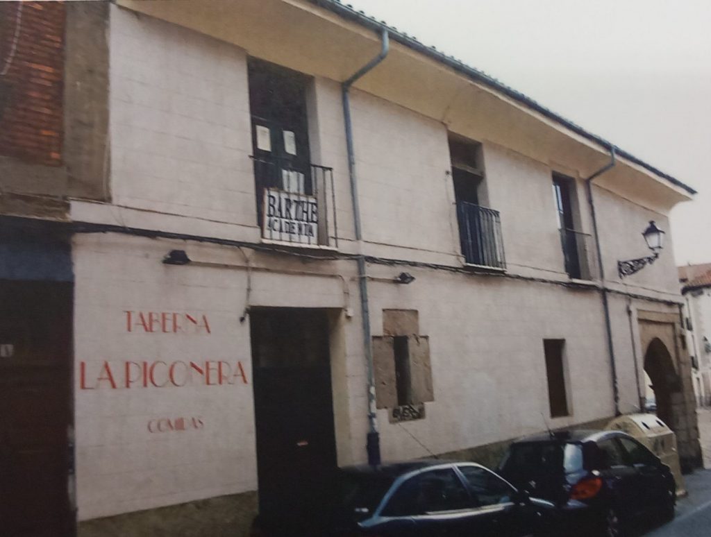 Aquí pueden ver cómo es la casa por fuera, sus dimensiones y su grandeza. Desde el siglo pasado, ha sido ocupada siempre por establecimientos hosteleros, remarcando en la llamativa fachada el nombre del lugar de reunión social. La Plaza del Grano siempre ha sido una ubicación para el esparcimiento de la vida, desde que se instalase el mercado en ella, hasta nuestros días, donde la noche del jueves al viernes santo miles de jóvenes (y no tan jóvenes) se reúnen como en conciliábulo para celebrar la muerte de nuestro Genarín, del que ya hemos hablado en varias ocasiones.