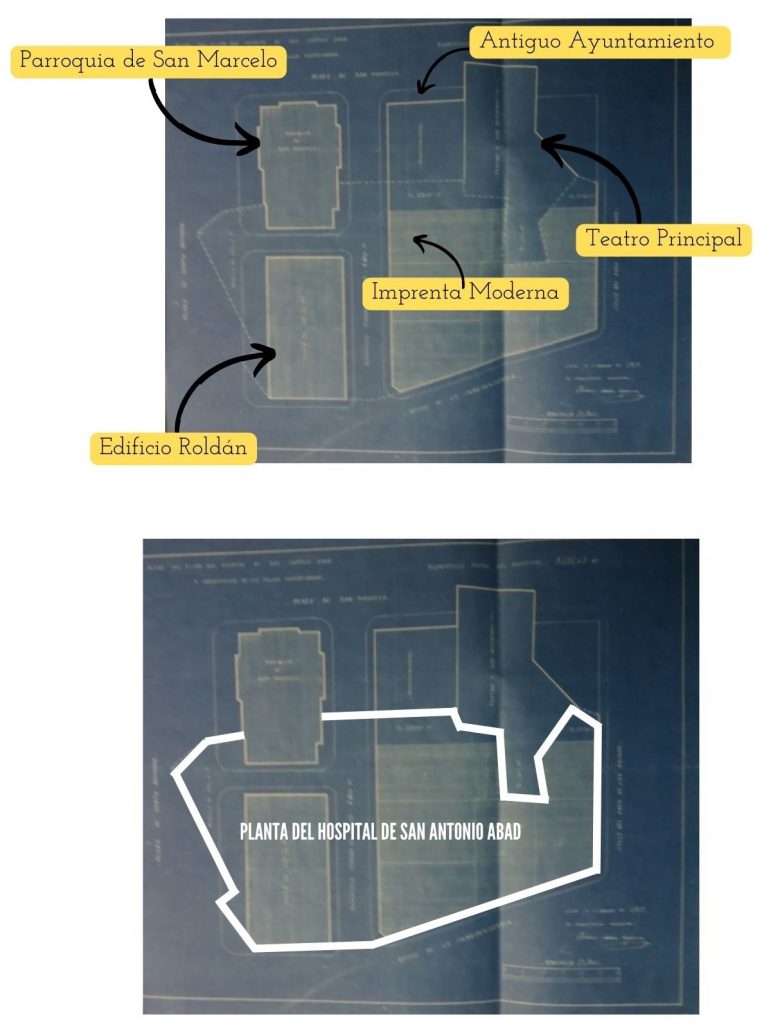 Como ya bien saben los ilustres lectores, y sin intención de repetir la historia, que tienen resumida en varios artículos referentes al Hospital, este fue declarado insalubre por los doctores Mallo y Hurtado y trasladado a los Altos de Nava, en un nuevo y flamante edificio construido por Manuel de Cárdenas con su estilo ecléctico y vanguardista. El Hospital fue desalojado y vendido en una subasta a la familia Roldán, quien se hizo con él en 1919. Tres años más tarde, el Hospital sería demolido y sus parcelas distribuidas entre la familia para proceder a su venta.
