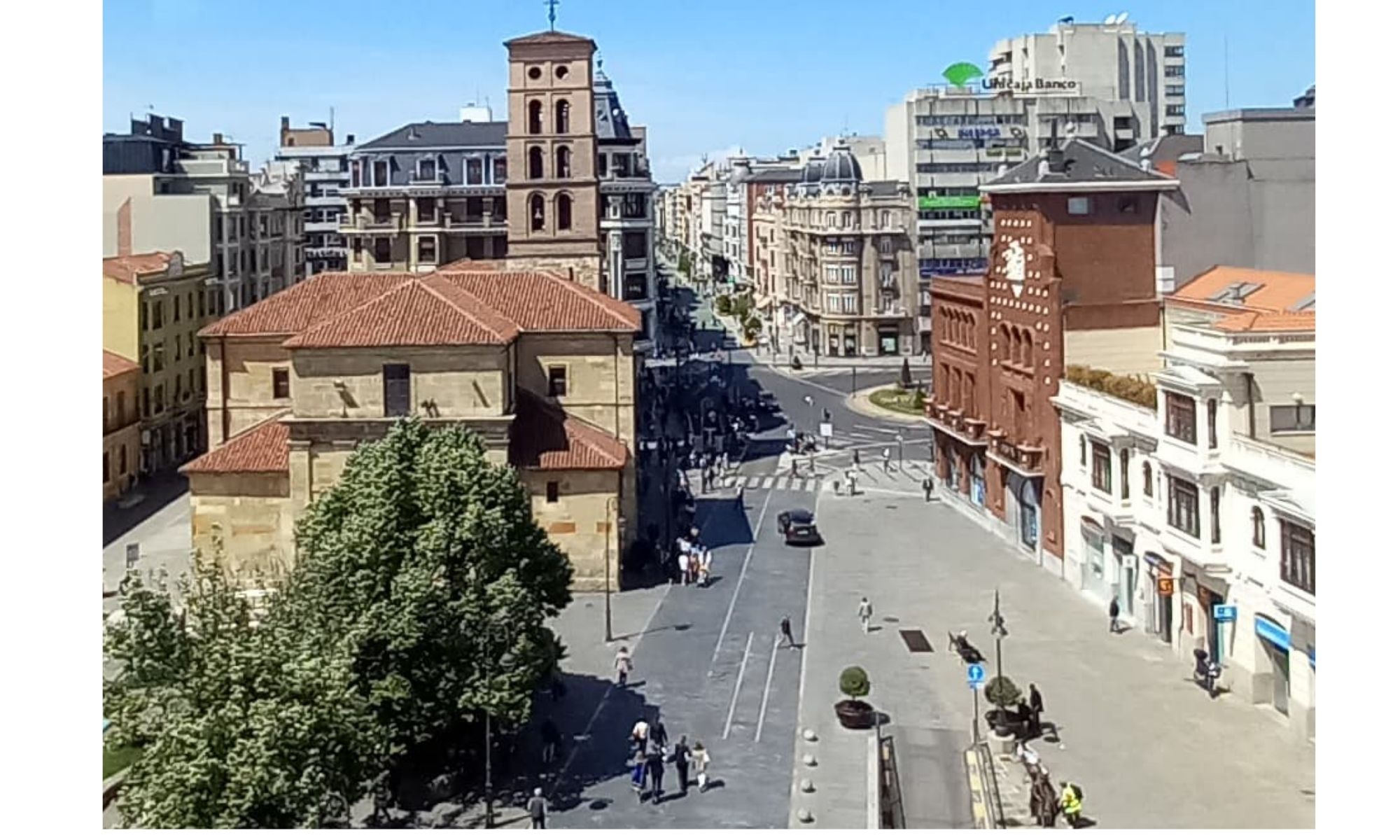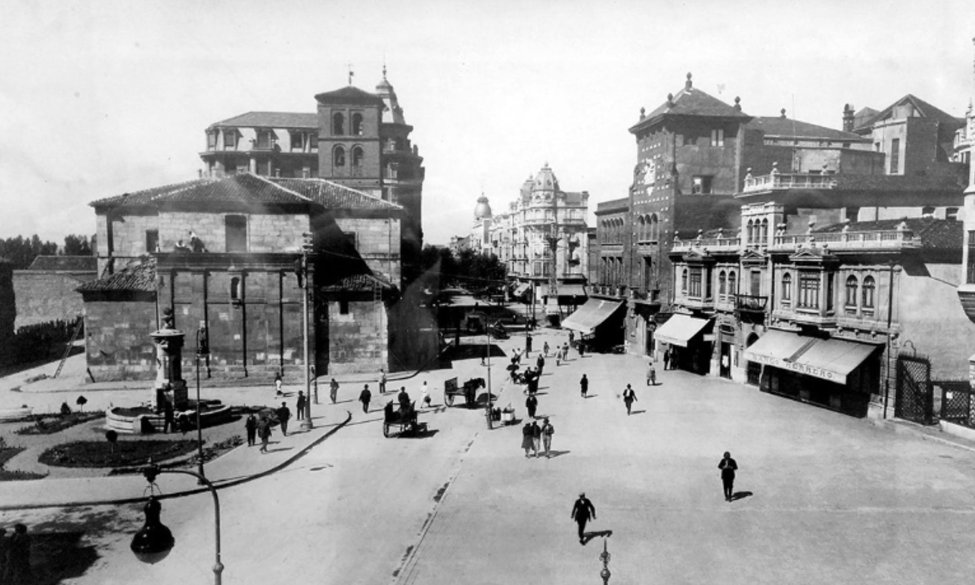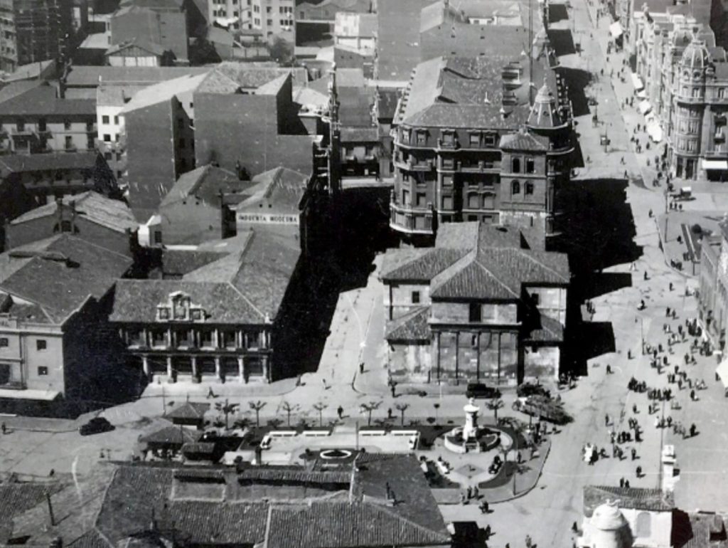Ahora mismo existe un hueco que conecta la calle Ancha con Ordoño II, pero como ven, por aquel entonces, aún existía el recodo del Hospital de San Antonio Abad, que fue demolido en pos del ensanche de la ciudad.