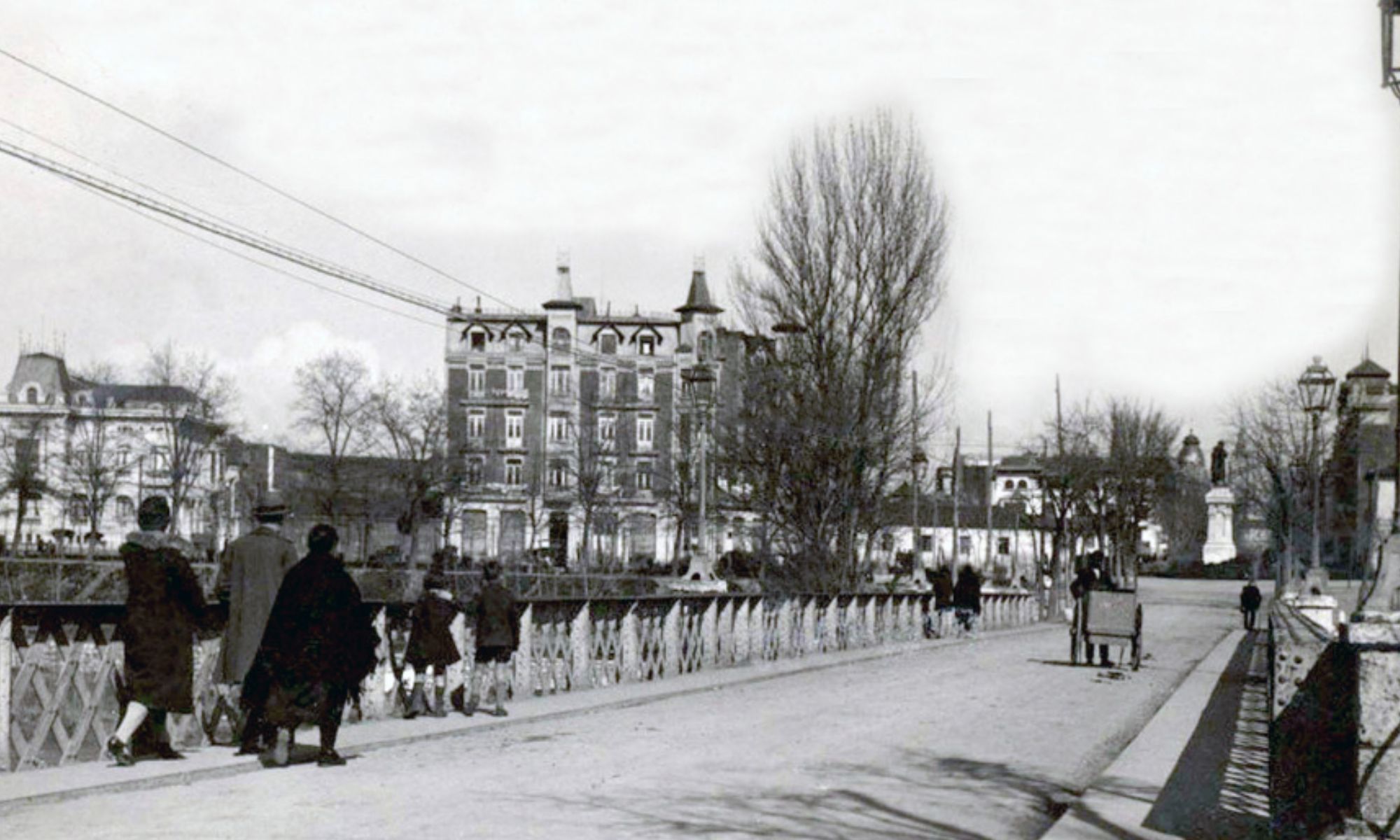 Ya ven cómo va tomando forma la plaza de Guzmán el Bueno, apareciendo en el horizonte el Sanatorio Miranda, la Casa Arce (o del Coño, por la exclamación repentina ante tan alto edificio) y la Casa Arriola, tan interesante por su historia superficial, y por la terrible tragedia que acompaña a su desarrollo, que contaremos dentro de un par de semanas.