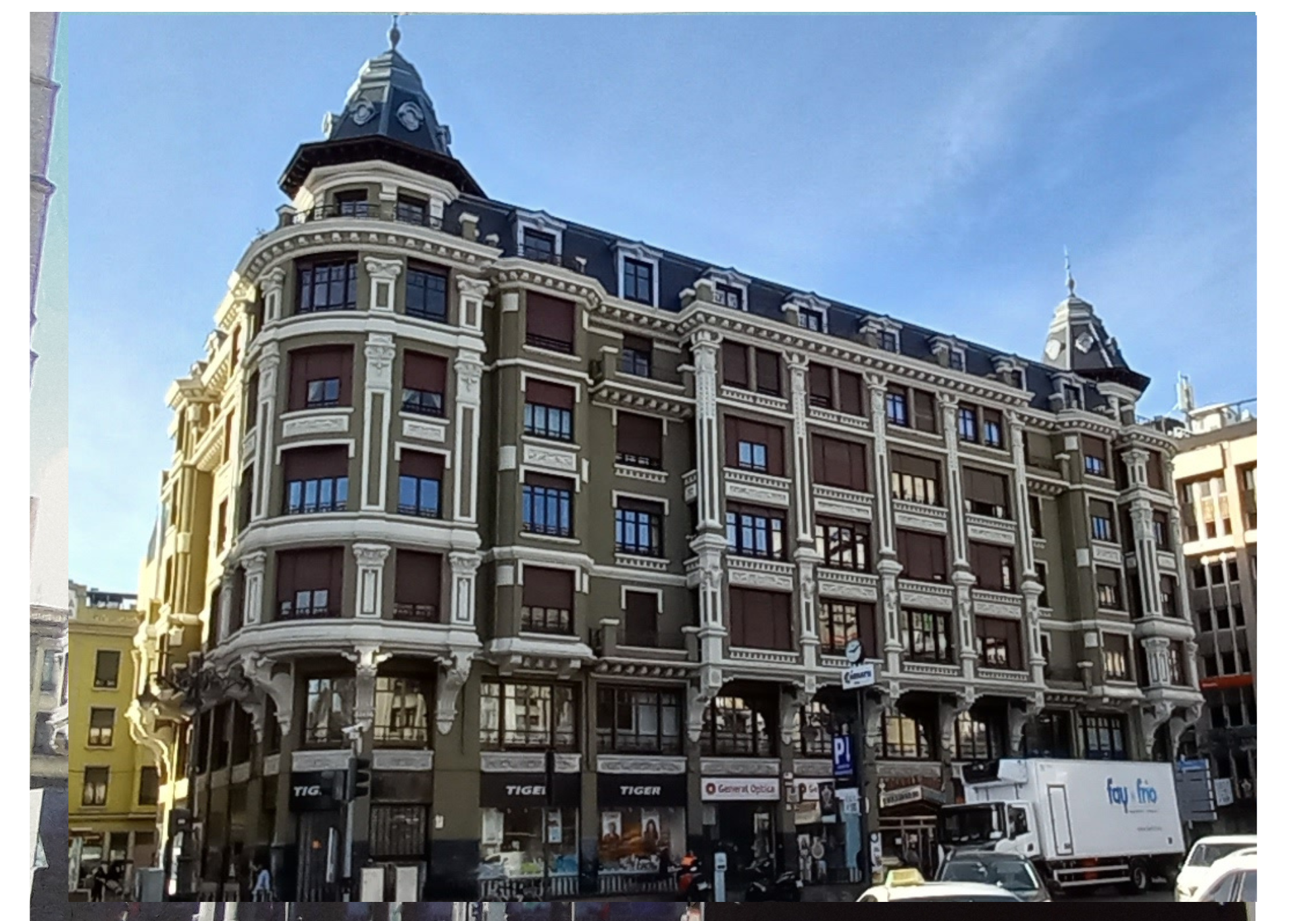 Después del fallecimiento de Dionisia, la dueña del edificio, sus hijos toman el mando del control del mismo, aprobando también cientos de reformas que se llevan a cabo a lo largo de su existencia. Su disposición, bebiendo de los edificios londinenses y aportando llamativos ventanales con apertura vertical, siempre hacia el cielo, y claraboyas decorativas que permiten el paso de la luz del sol para iluminar sus rellanos, son distintivos fundamentales de su estructura.