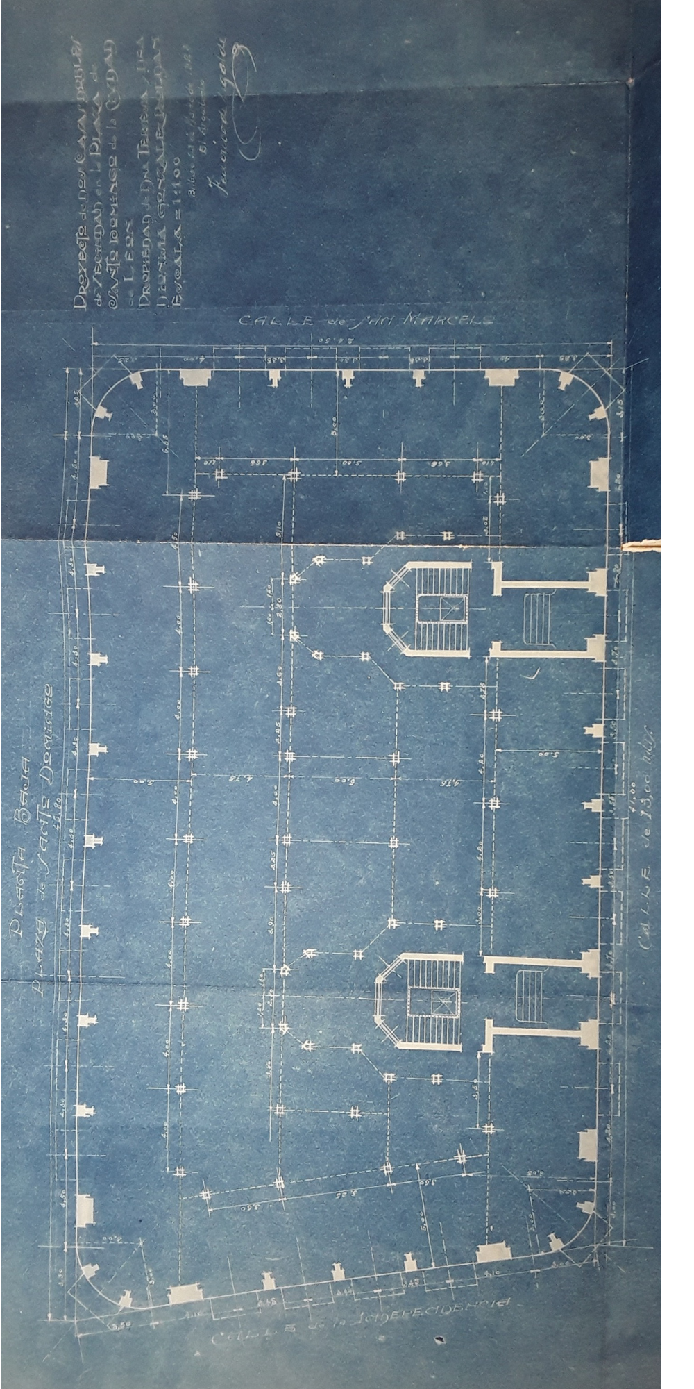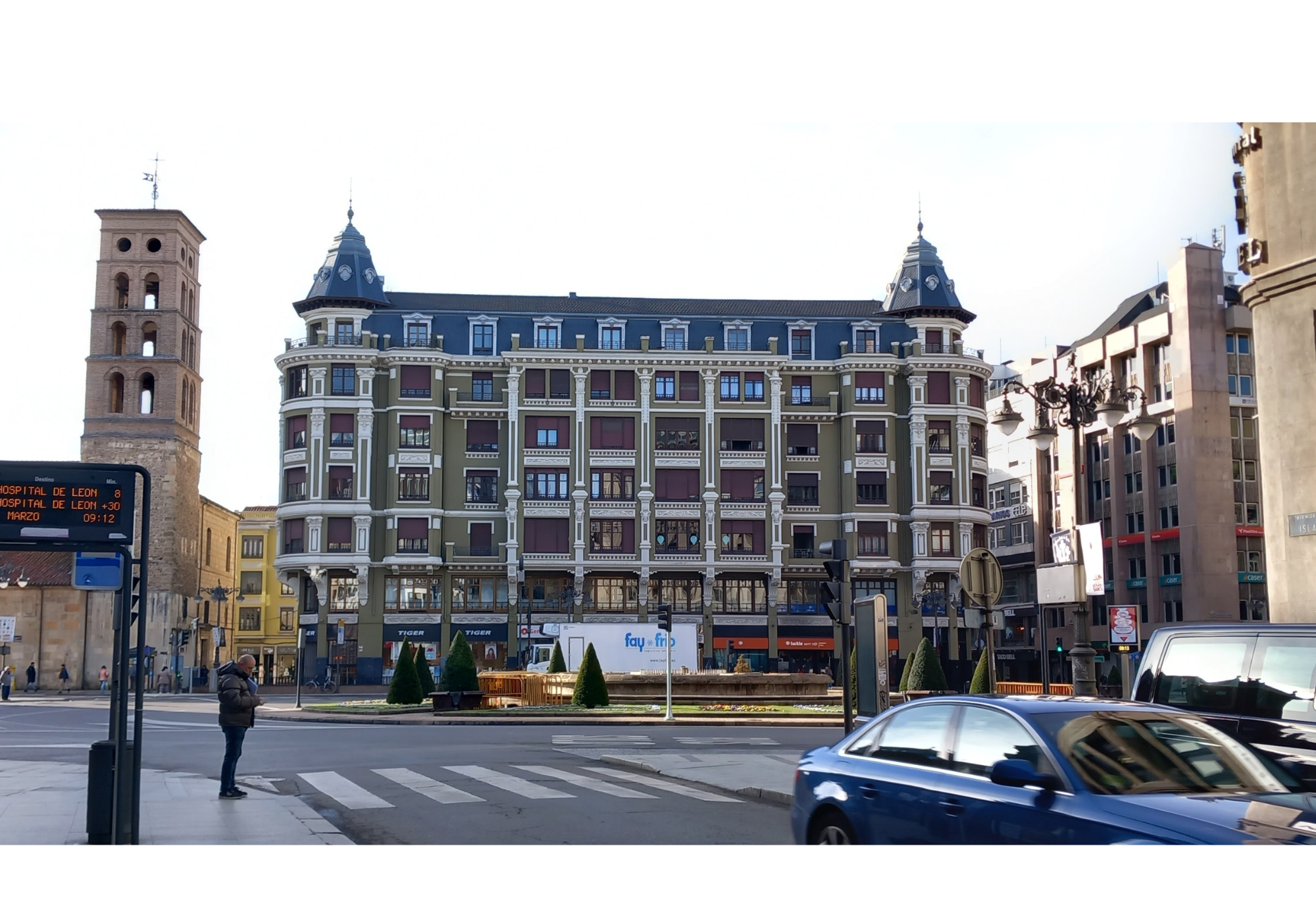 Ya pueden ustedes conocer todos los entresijos de su pasado en los artículos anteriores de esta sección. Pero aunque ese afán de movilización me gobierne, es este Cicerone ilusionado el que posa su vista sobre los cimientos de otro de los grandes titanes arquitectónicos de la ciudad de León: la casa Roldán. Ya hemos observado cómo lucía la planta del Hospital, sito en ese mismo emplazamiento y cómo la familia González Roldán dividió las parcelas para que estas luego fueran vendidas a los interesados, pero antes de pasar a otros quehaceres y que el Edificio Valentín, objeto de mis pensamientos durante los venideros artículos, nublen mi juicio, debo recalcar la importancia de estos edificios: la casa Roldán, la Imprenta Moderna, la Iglesia de San Marcelo, el edificio que hace esquina entre Legión VII e Independencia…