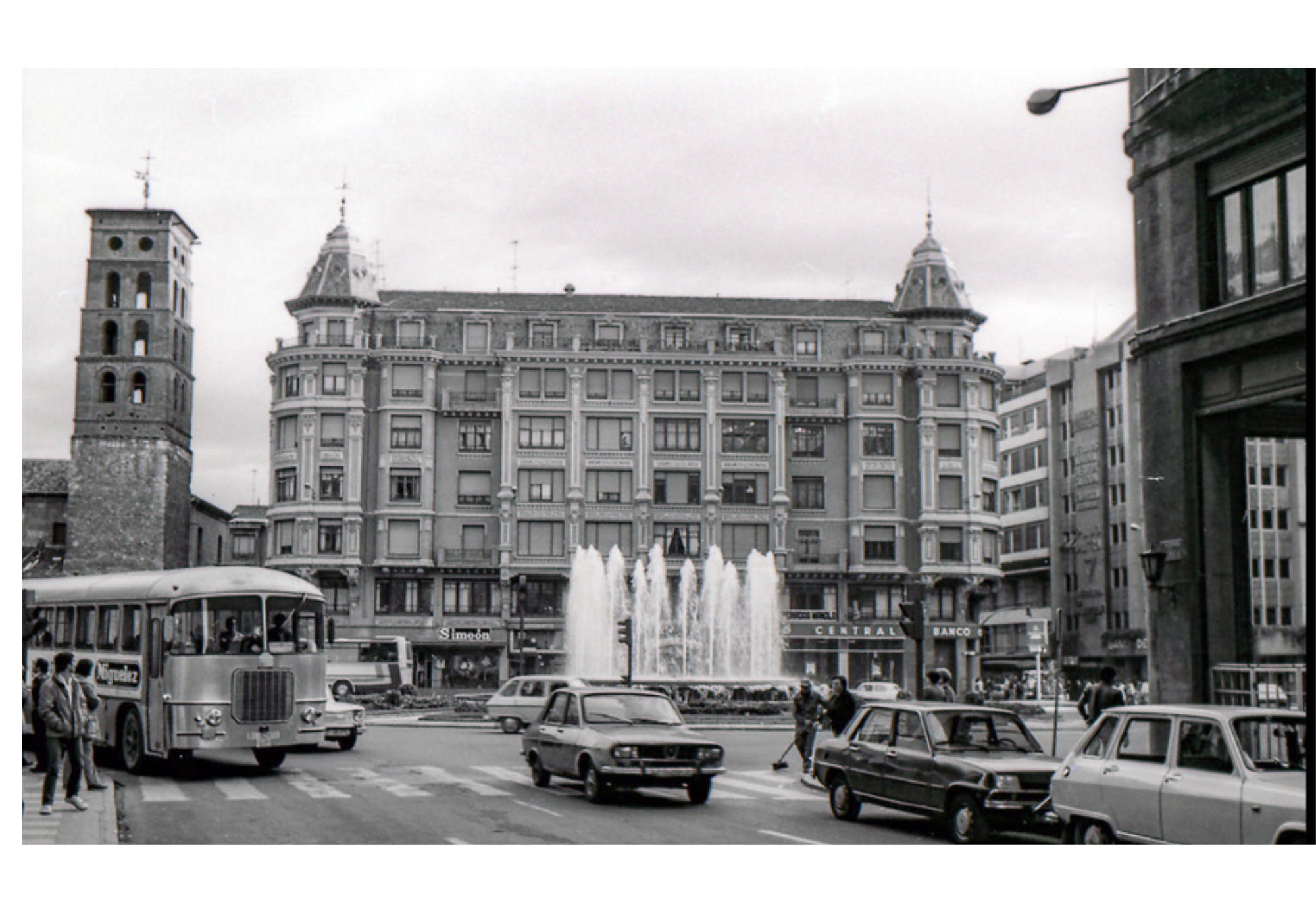 La pintura verde del edificio se fue convirtiendo en un pantanoso recuerdo de un tiempo mejor, y las manchas que afloraban en su fachada inauguraron una época de decadencia que transformó al Roldán en una pesada carga para la vitalidad de la que una vez había hecho gala León. Nos despedimos de las fotografías en blanco y negro, al menos en este artículo, observando cómo era, a finales de la década de 1970, la casa Roldán y, si se fijan, a su izquierda, podrán contemplar cómo, el campanario de la Iglesia de San Marcelo, luce ya sus cuatro alturas actuales, aunque eso resulta menester de otro de nuestros posteriores artículos.