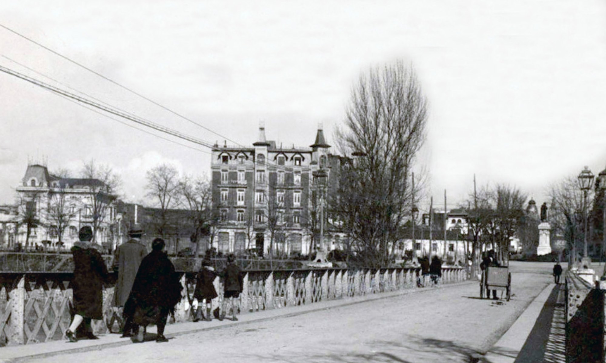 Ahora, sí, el Chalet de Diego Mella aparece en la imagen, para recordarnos que será la última vez que disfrutemos de la vista de la Casa de los Picos y del citado chalet. Su color, nos da una idea de la bella estampa de la plaza de Guzmán el Bueno. Ustedes no sé si lo tildarían de belleza, pero sí de una carismática personalidad que pocas plazas en el mundo poseen.