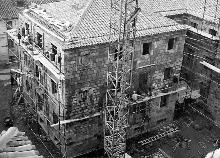 La historia del Palacio de Renedo ValdeTuéjar fue en declive desde principios del siglo XX, tiendo entre sus dueños a magníficos diletantes que pretendían devolverle la gloria o, utilizar sus restos para levantar un palacio aún mayor. A la vista está que no lo consiguieron, y en 1963, los dueños cedieron sus derechos sobre el inmueble al Estado. Fue iniciativa de nuestro citado Obispo Almarcha rescatar tan preciada fachada, pero son la ayuda del ideólogo y gran arquitecto Juan Torbado, quien en 1964, presentó el proyecto de la nueva Obra Hospitalaria de Nuestra Señora de Regla.