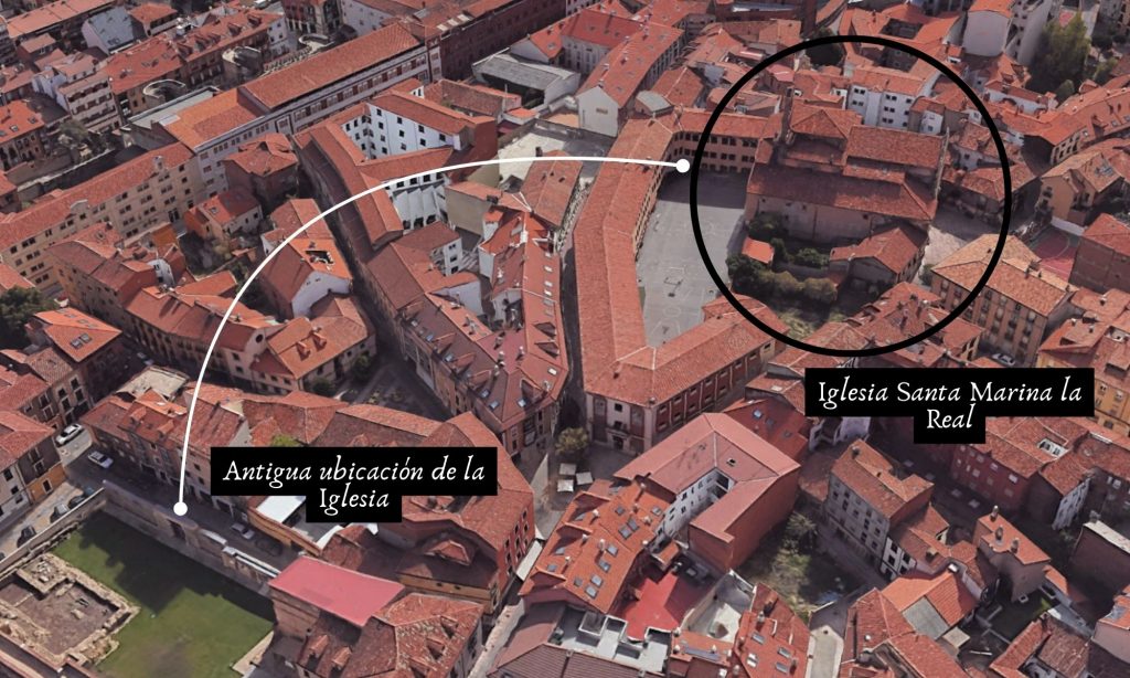 Poco o nada queda de aquella iglesia que fundó San Millán, pues las continuas actualizaciones y el progreso han conducido a la iglesia al olvido. La iglesia actual fue remodelada y protegida en 1979 gracias a las aportaciones económicas de María Guerrero Herrero. Pero la antigua iglesia de Santa Marina la Real se alzaba en la calle que siempre llevó el nombre de la Santa, próxima al convento de las descalzas, y cerca también de la Puerta de San Alvito. Argumenta Villanueva que uno de los cubos de la muralla, fue sustituido por una torre de sillares blancos, como la de San Isidoro, y como el resto de los cubos, desapareció a comienzos del siglo XX cuando se llevó a cabo el plan de ensanchamiento de la ciudad.