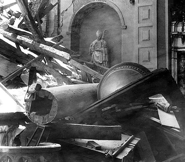 En ese solar, en el que ahora reposan los restos del asentamiento romano, aún se puede ver la portada de piedra sillería y en el dintel, ha quedado grabada una jarra con azucenas y el año 1784, con una espadaña con la imagen de la Virgen.