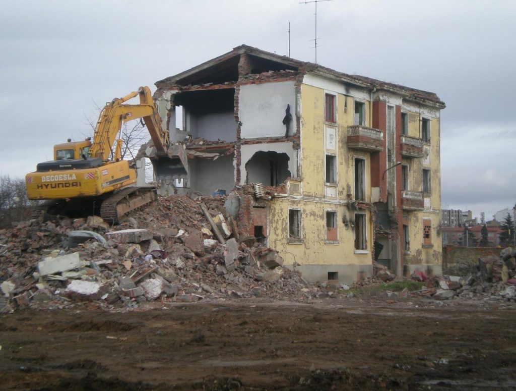 Permítanme adelantar acontecimientos para luego regresar a la narración original. Observen el plano encontrado en el Archivo Municipal de León y compárenlo con la siguiente imagen. Entre ambas, sesenta y seis años, miles de historias y cientos de fiestas de cumpleaños en los sótanos de las mismas. Alégrense de que existieran, pero comprendan también toda la información, secretos y leyendas que se guarecen entre las paredes de un edificio. Sus historias nos afectan a los paseantes que observamos su derribo, pero transforman a las personas que los habitaron.