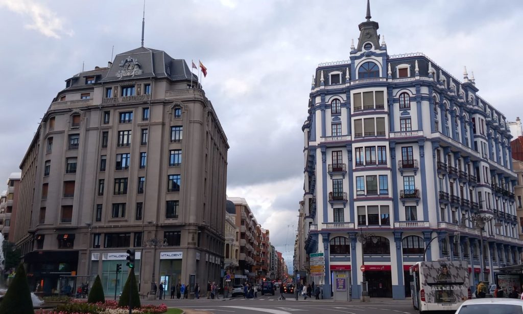 En esta gran avenida, una de las más importantes de León, se localizan alguno de los edificios más representativos, pero a la vez más desconocidos de la ciudad de León. El primero que llama mi atención es el de que hace esquina entre las calles Héroes leoneses y Padre Isla. Quizás muchos de los que esperan frente a él el autobús se hayan dado cuenta de esta curiosidad, pero yo la desconocía hasta que dediqué más tiempo a contemplar las fachadas de los edificios de mi ciudad y menos a la pantalla del móvil en la que estaba imbuido.