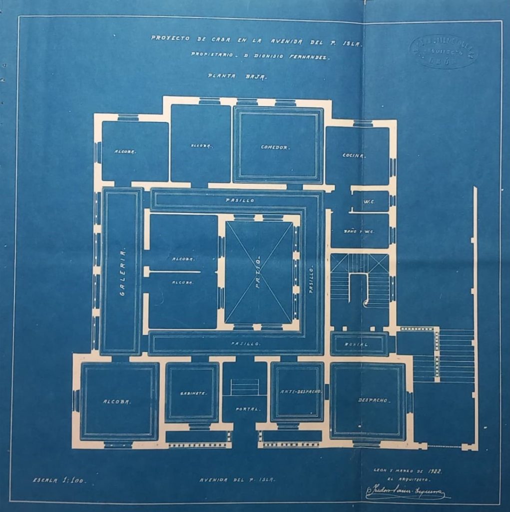 Subido a las escaleras de la iglesia, confirmo lo que sospechaba, que la vista del edificio de la Biblioteca Pública de Padre Isla es incomparable desde esa perspectiva. Gracias a los documentos que con tanta emoción siempre me ayuda a encontrar Magín, les ofrezco un dato inédito sobre ella: el plano original de su construcción: