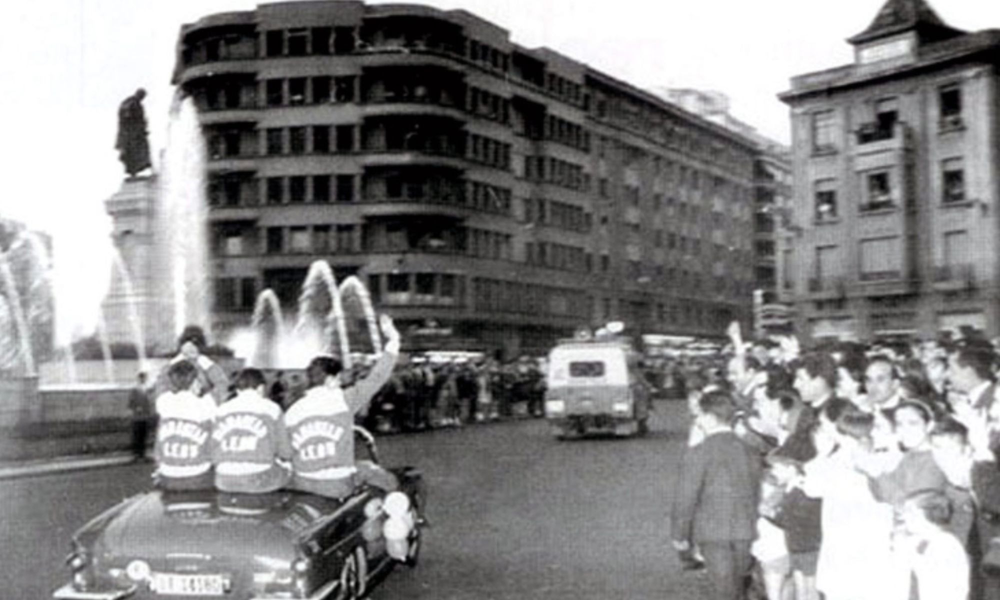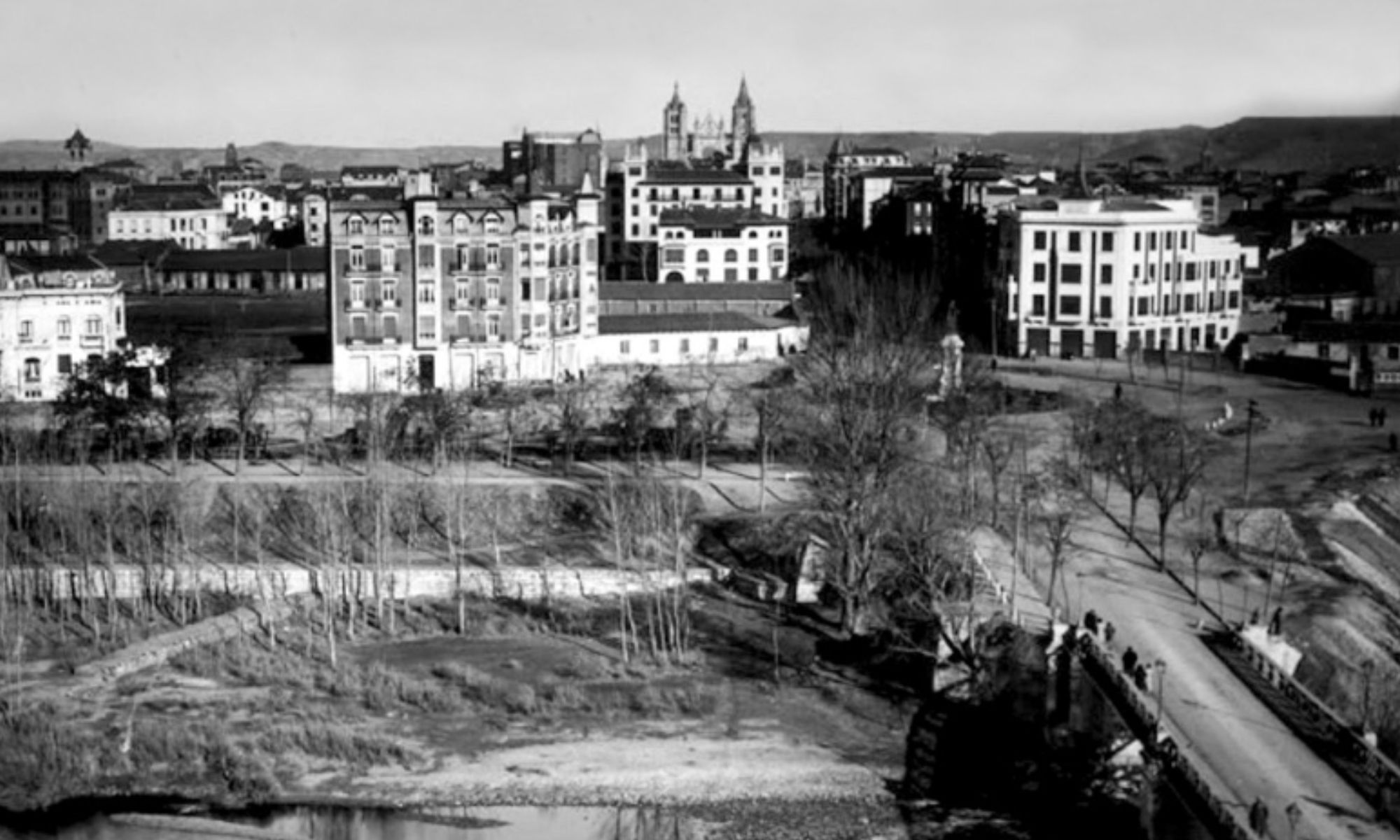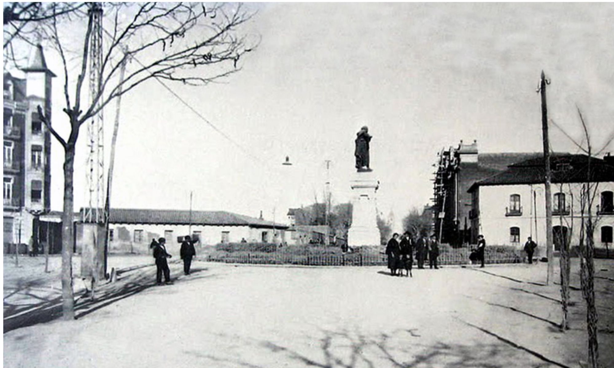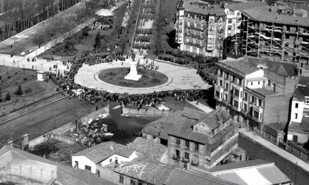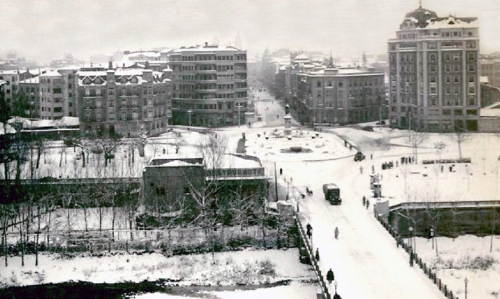 Una imagen de los años cuarenta nos permite contemplar el edificio aún en construcción, con su andamiaje alzándose sobre una Plaza de Guzmán el Bueno repleta de actividad. En primer plano, ciudadanos de la época disfrutan de un tentempié al pie de la estatua de Guzmán, sin sospechar que aquella construcción que crecía a sus espaldas pasaría a formar parte del paisaje urbano de la ciudad durante décadas.
