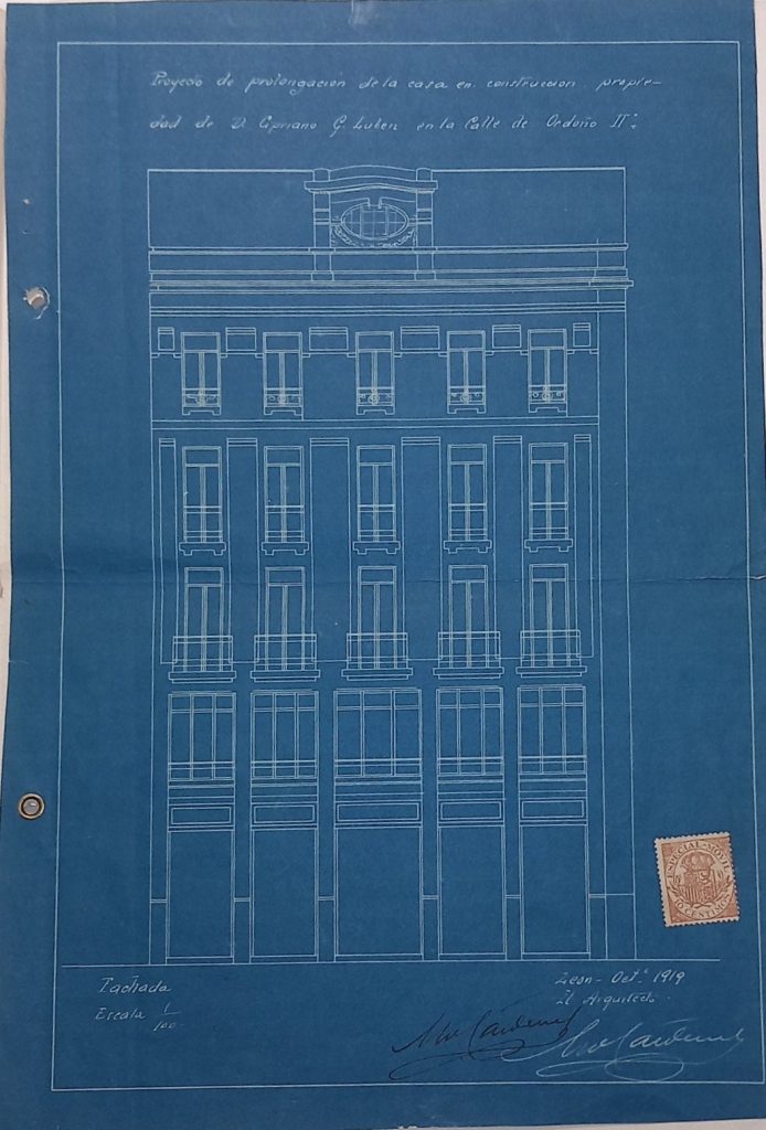 El mismo año de la presentación del proyecto, que con tanta ilusión siempre me hace llegar Magín, desde el Archivo Municipal de León, se proyecta la anexión, o añadidura, de una segunda parte del edificio, que sería la prolongación desde el portal de la Casa Lubén hacia la Casa Lorenzana. Esto ocurriría más adelante también, en arquitectos como en Guisasola, o en proyectos como el de la Imprenta Moderna, que quizás arrepentidos por la humildad de la construcción, pensasen en una nueva altura o en una prolongación.
