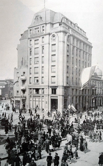 Llegaron las dos de la tarde, y se comienzan a escuchar los primeros disparos. Los comensales deciden protegerse de los mismos abrazando la moqueta del elegante hotel, mientras decenas de soldados aparecían por la Plaza de San Marcelo hasta la de la Libertad al grito de ¡Viva España!