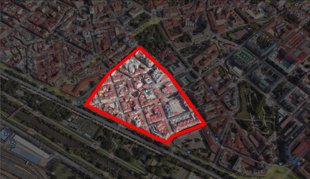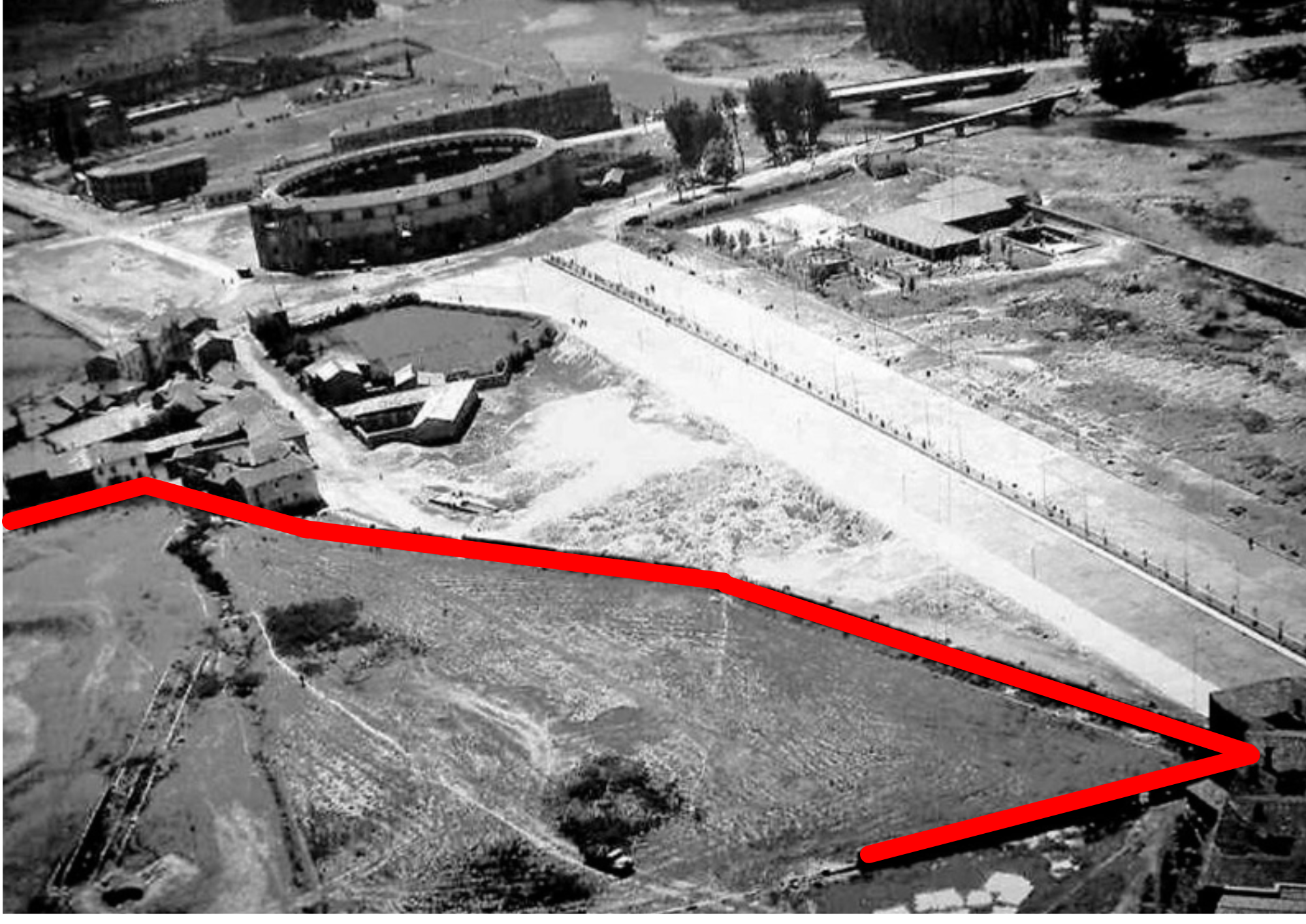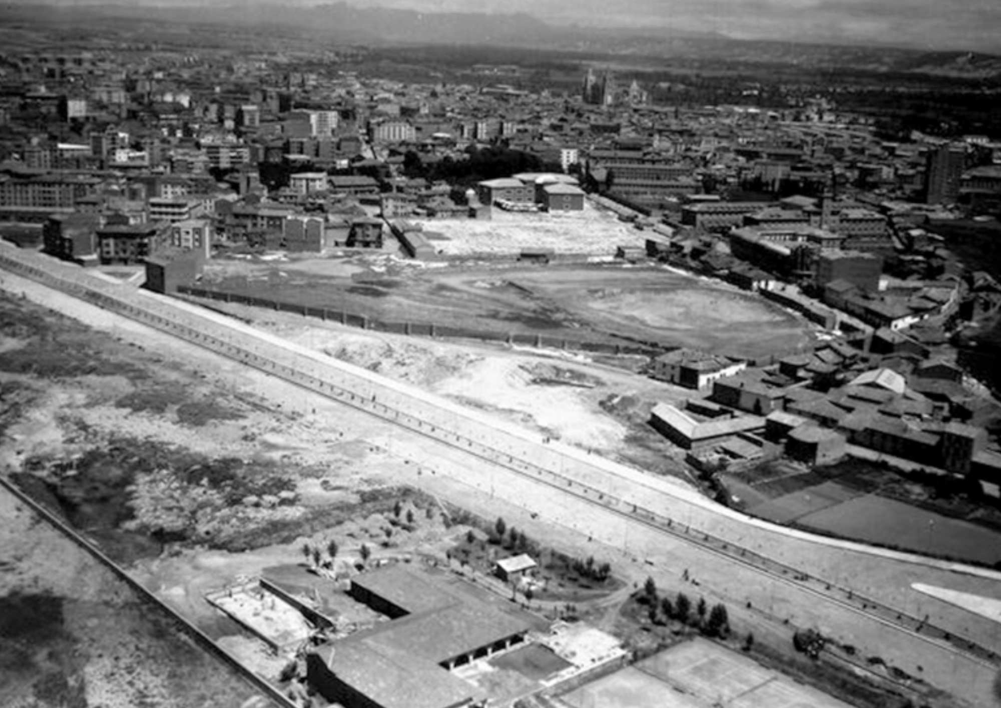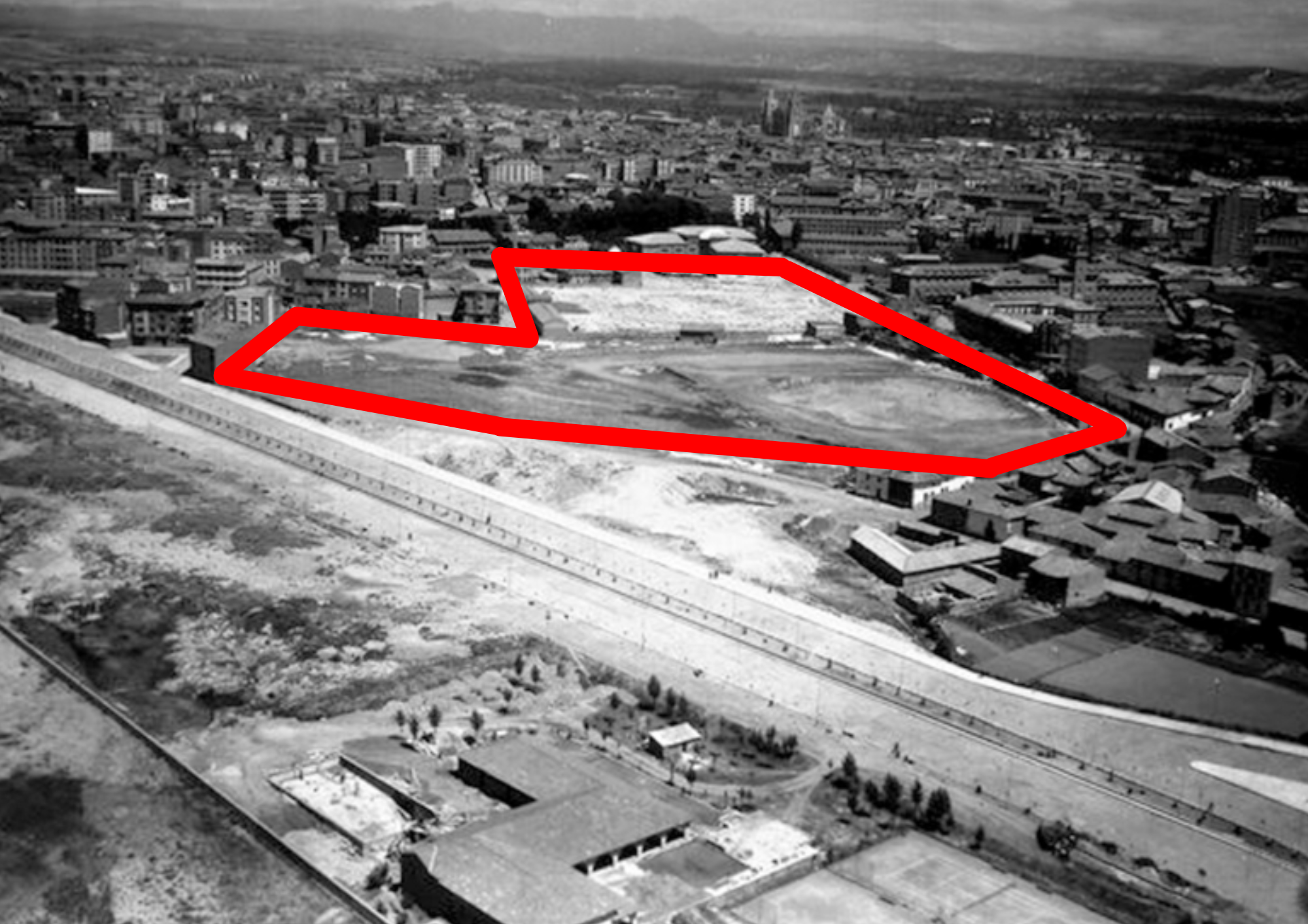 Se observa, ya por último, en la siguiente imagen, el hueco que dejó el Monasterio de San Claudio en el panorama urbanístico leonés, y que hubo de ser rellenado con el progreso, las nuevas edificaciones y la desaparición del mismo terreno a medida que el barrio de San Claudio crecía y crecía hasta llegar a ser tan acogedor como lo es ahora.