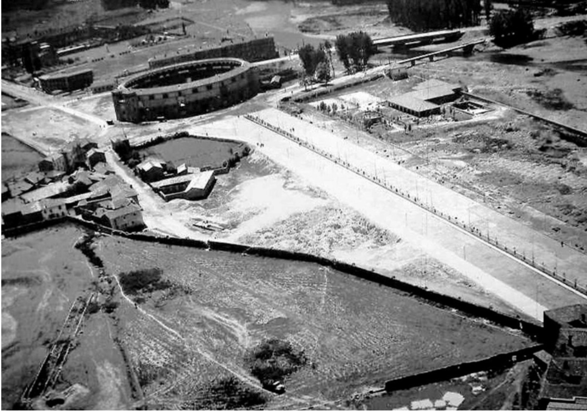 El Monasterio, al completo, fue demolido y convertido en escombros, que fueron vendidos para hacer carreteras. Una pequeña pero importante parte se mantuvo, perenne, mientras el tiempo pasaba y el progreso alcanzaba a la ciudad de León. Con la recién inaugurada Plaza de Toros en primer plano, observamos, en 1950, cómo las cicatrices del tiempo moldearon el entorno leonés. Y, en el centro de la imagen, un avispado lector contemplará los restos de la muralla del grandioso Monasterio de San Claudio.