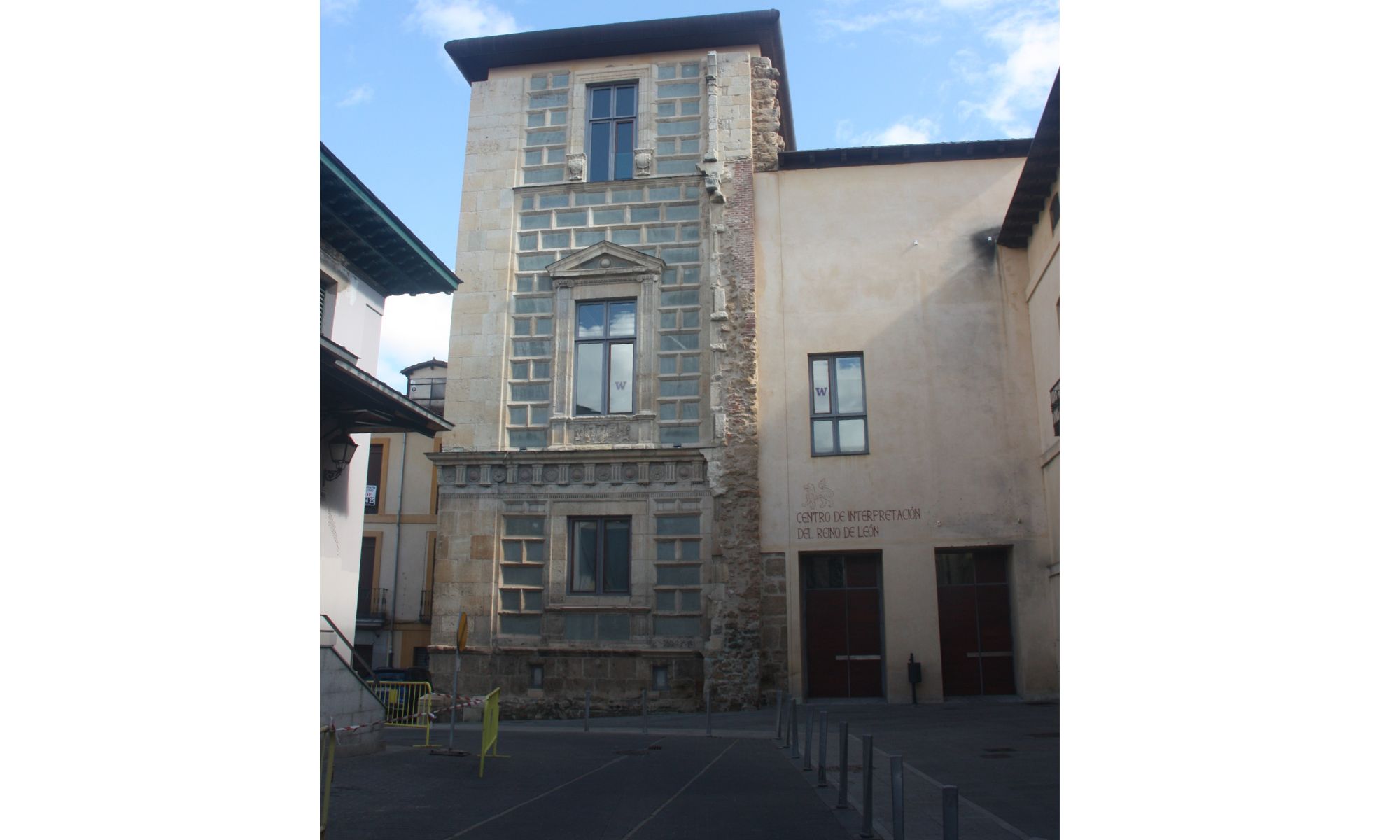 El cuerpo central del edificio cuenta con una fachada reconocible, y de la que se abren numerosos ventanales que se asoman a la plaza. Varias buhardillas y patios interiores que dotan de amplitud a espacios arquitectónicamente ganados a la superficie del terreno. Durante siglos, el Palacio fue perdiendo su importancia, y siendo olvidado por parte de los leoneses, como una de esas anticuallas antediluvianas de piedra que apenas movilizan una mirada a los paseantes solitarios que se disponían a pasar a su lado.