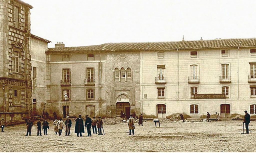 Pero, es cierto, querido lector y lectora, nos hemos dejado un apunte en el tintero, aquella referencia al fantasma que vaga por sus pasillos. Pero hay otras muchas historias que contar, por ejemplo, la aparición de aquel antiestético tendejón del mercado cubierto, como diría Victoriano Crémer, o la misteriosa pieza de ajedrez de la plaza del conde Luna. ¿Han visto alguna vez la plaza desde el aire, dibujada en un mapa del siglo XI?