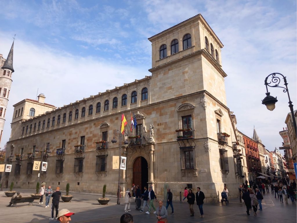 Antes de retirarme, quiero detenerme en uno de esos edificios que han sido testigos del devenir de la ciudad: el Palacio de los Guzmanes. Esta majestuosa construcción, reflejo de la grandeza renacentista, fue promovida en el siglo XVI por don Ramiro Núñez de Guzmán, miembro de una familia de renombre en el núcleo nobiliario leonés. Su propósito era dotar a los Guzmanes de una residencia digna de su linaje, un espacio que no solo sirviera como hogar, sino también como símbolo de su prestigio social.