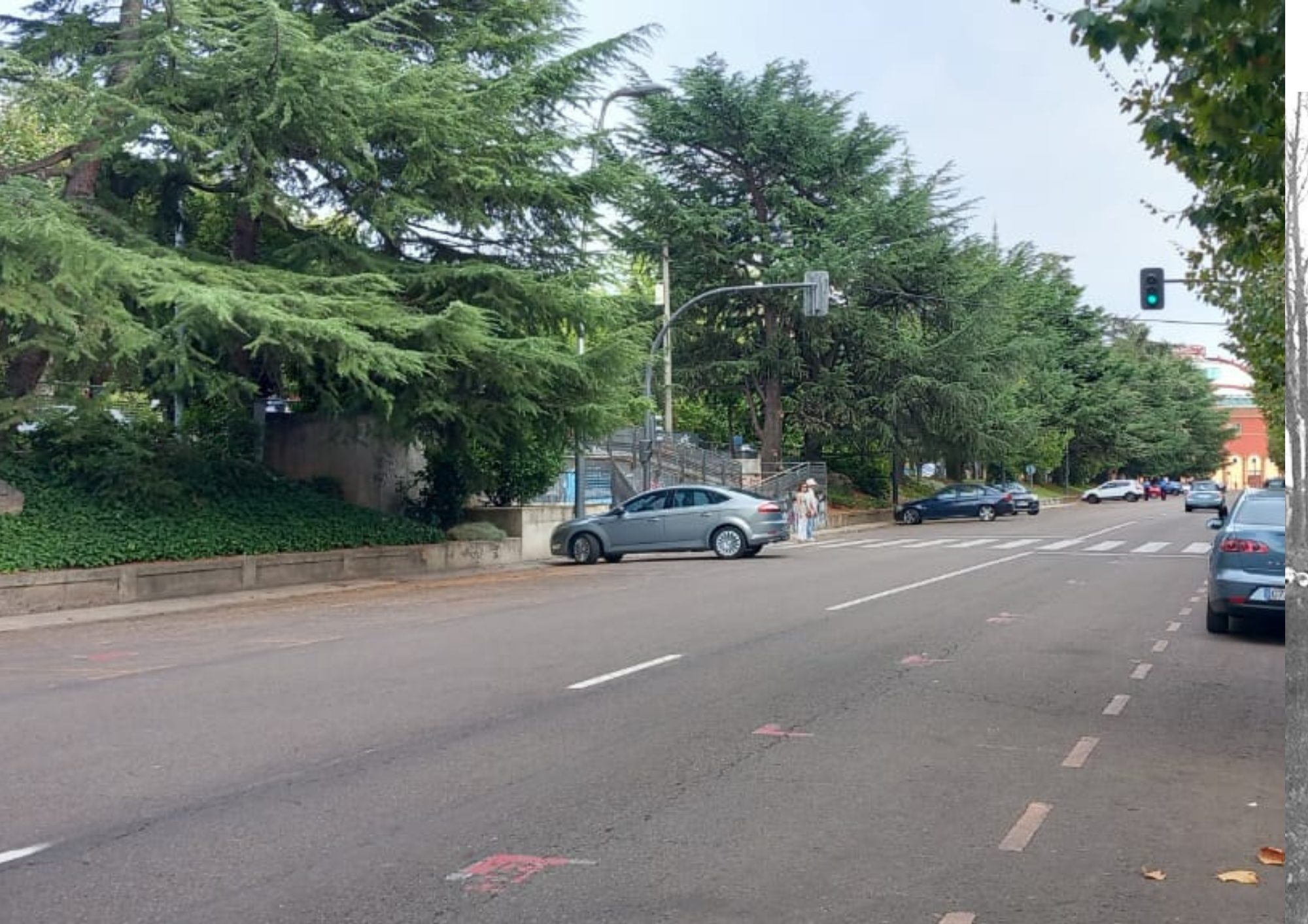 Al fondo de la imagen, San Marcos, y a la derecha y entre los árboles, la estatua de Guzmán, que nos indica el camino hacia la estación del Norte, si es que resulta que León no ha sido de nuestro agrado.