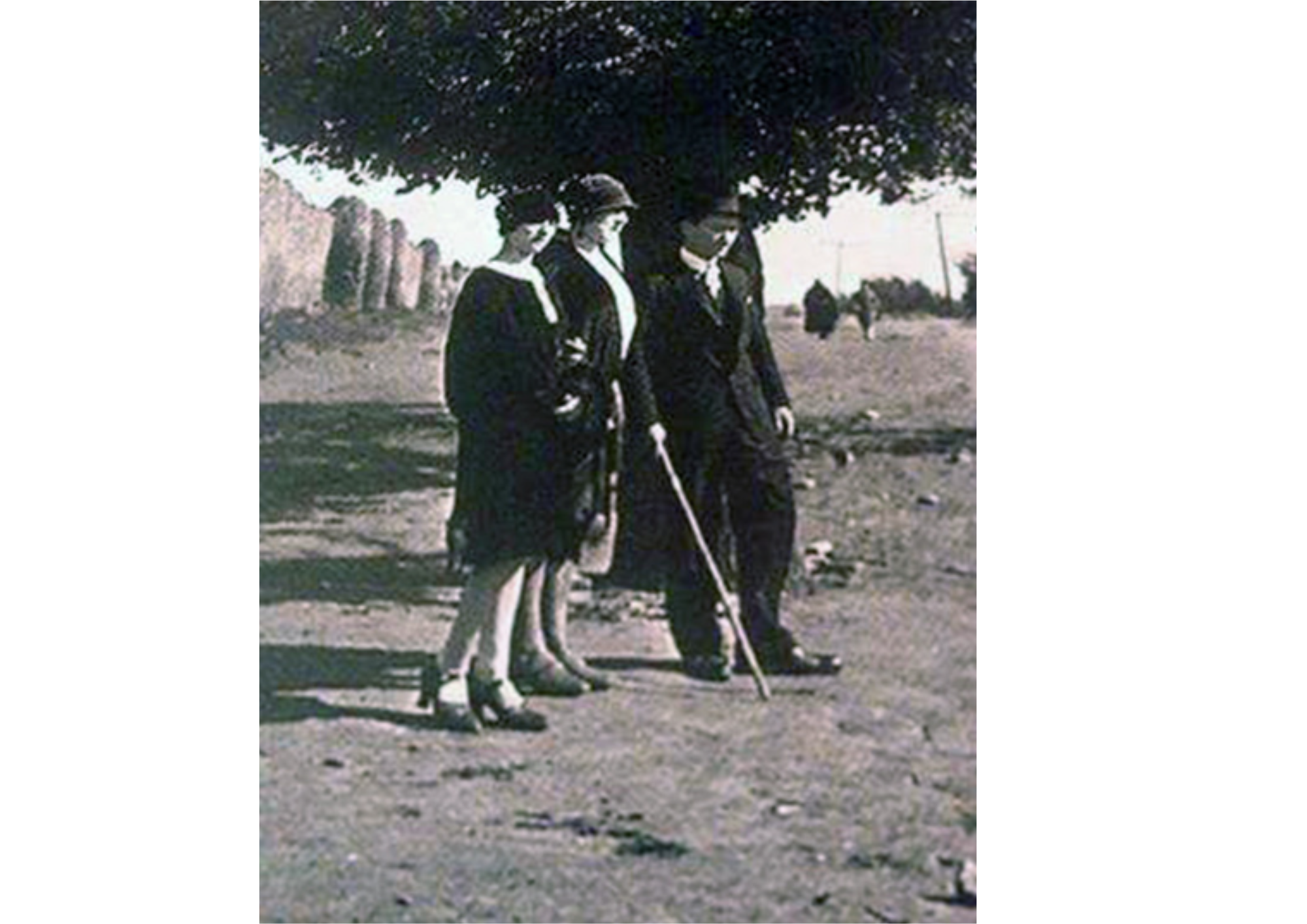 Aquí tienen ustedes, interesados lectores, a los señoritos y a las señoritas de los felices años veinte, posando para la cámara junto a la citada muralla.
